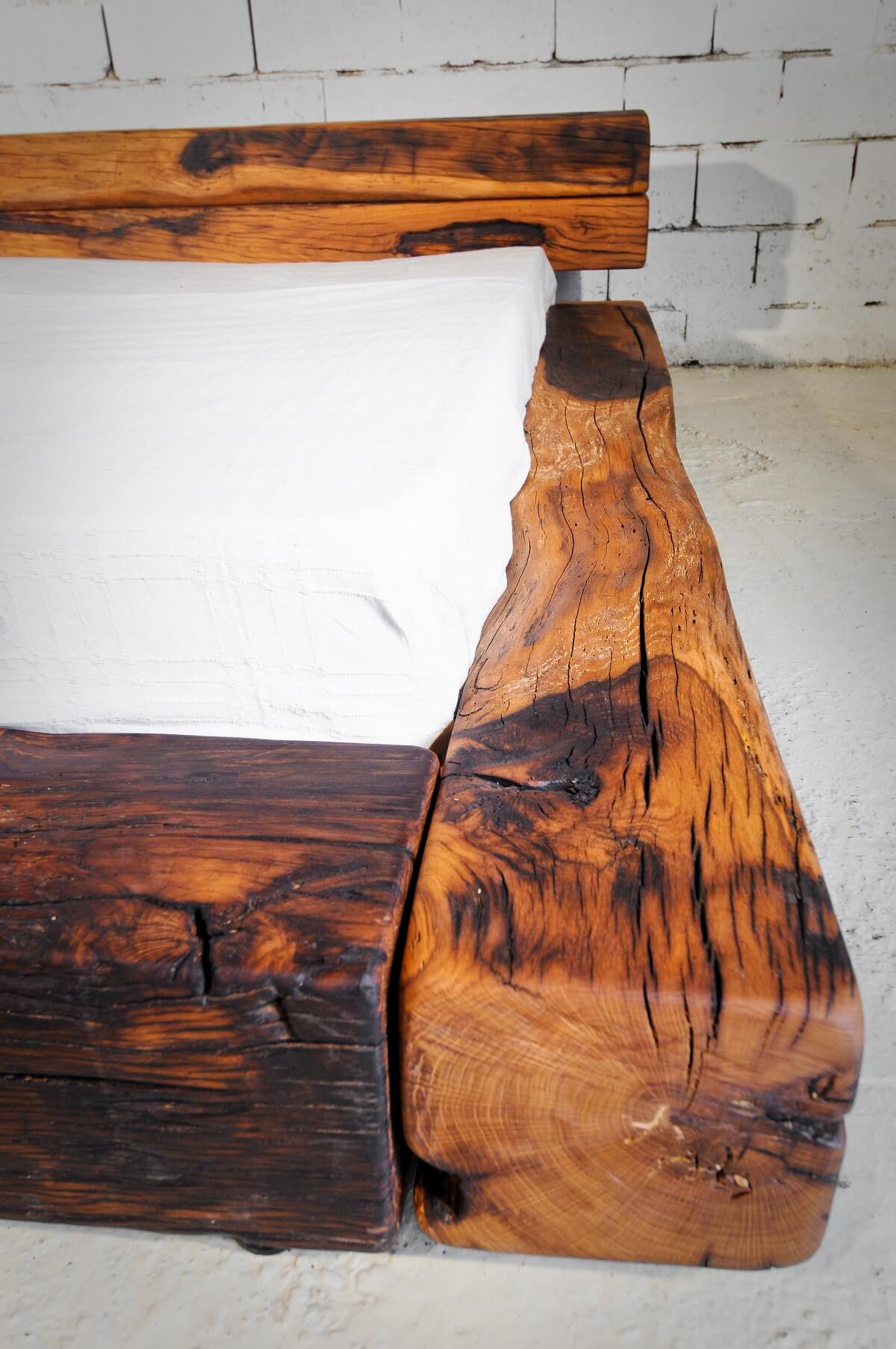 מיטה זוגית מיוצרת מעץ אלון מחודש בן 100+ שנים למראה עתיק ואקזוטי. המיטה מוגבהת ליצירת מראה צף ונקי